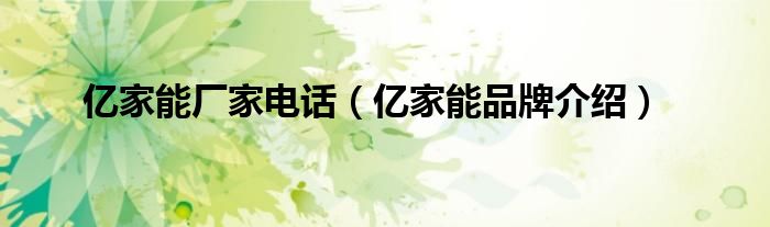 大家好,小源来为大家解答以上问题。亿家能厂家电话,亿家能品牌介绍很多人还不知道,现在让我们一起来看看吧!