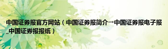 大家好,小源来为大家解答以上问题。中国证券报官方网站,中国证券报简介→中国证券报电子报_中国证券报报纸很多人还不知道,现在让我们一起来看看吧!