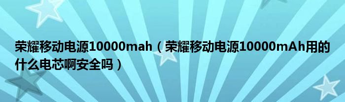 1,荣耀移动电源10000mAh用的什么电芯啊安全吗 :荣耀移动电源10000mAh以手机电芯安全标准定义移动电源的标准。精选高密度锂聚合物电芯不仅仅符合国标,而且也通过了美国最有权威的,也是世界上从事安全试验和鉴定最专业的美国UL安全认证。12重安全防护确保使用安全