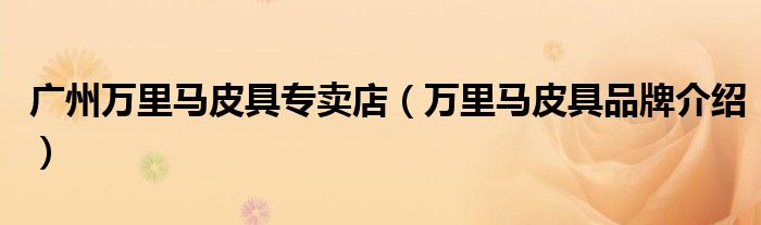 大家好,小源来为大家解答以上问题。广州万里马皮具专卖店,万里马皮具品牌介绍很多人还不知道,现在让我们一起来看看吧!