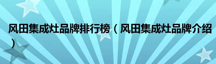 大家好,小源来为大家解答以上问题。风田集成灶品牌排行榜,风田集成灶品牌介绍很多人还不知道,现在让我们一起来看看吧!