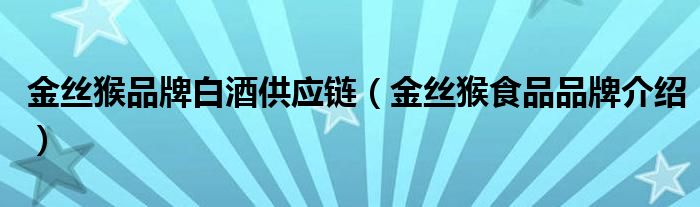 大家好,小源来为大家解答以上问题。金丝猴品牌白酒供应链,金丝猴食品品牌介绍很多人还不知道,现在让我们一起来看看吧!