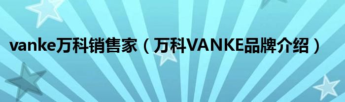 大家好,小源来为大家解答以上问题。vanke万科销售家,万科VANKE品牌介绍很多人还不知道,现在让我们一起来看看吧!