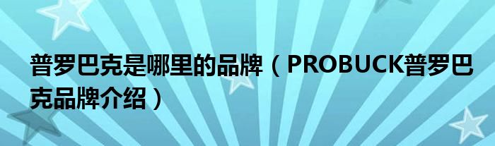 大家好,小源来为大家解答以上问题。普罗巴克是哪里的品牌,PROBUCK普罗巴克品牌介绍很多人还不知道,现在让我们一起来看看吧!