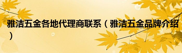 大家好,小源来为大家解答以上问题。雅洁五金各地代理商联系,雅洁五金品牌介绍很多人还不知道,现在让我们一起来看看吧!