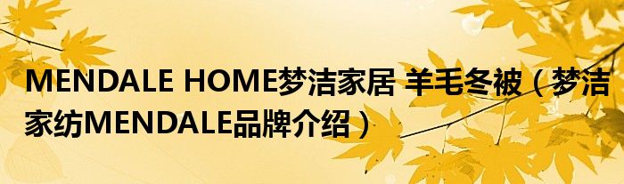 大家好,小源来为大家解答以上问题。MENDALE HOME梦洁家居 羊毛冬被,梦洁家纺MENDALE品牌介绍很多人还不知道,现在让我们一起来看看吧!