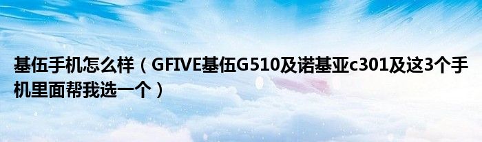 大家好,小常来为大家解答以上问题。基伍手机怎么样,GFIVE基伍G510及诺基亚c301及这3个手机里面帮我选一个很多人还不知道,现在让我们一起来看看吧!