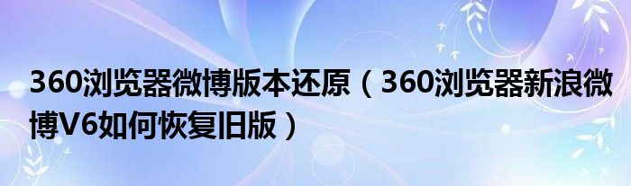 360浏览器微博版本还原(360浏览器新浪微博V6如何恢复旧版)