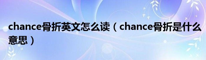 chance骨折英文怎么读(chance骨折是什么意思)