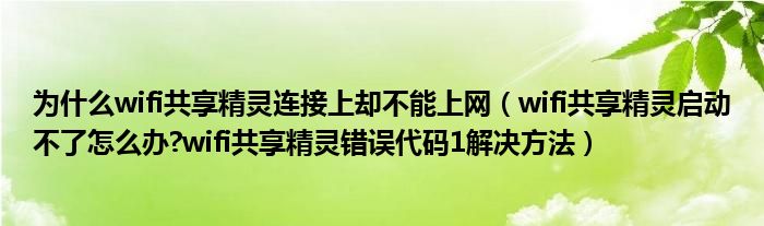 大家好,今天小悦来为大家解答以上问题。为什么wifi共享精灵连接上却不能上网,wifi共享精灵启动不了怎么办?wifi共享精灵错误代码1解决方法很多人还不知道,现在让我们一起来看看吧!