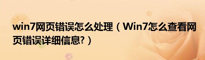win7网页错误怎么处理(Win7怎么查看网页错误详细信息?)