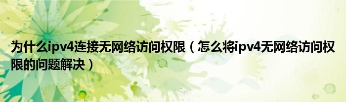 为什么ipv4连接无网络访问权限(怎么将ipv4无网络访问权限的问题解决)