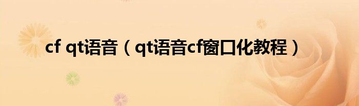 大家好,今天小悦来为大家解答以上问题。cf qt语音,qt语音cf窗口化教程很多人还不知道,现在让我们一起来看看吧!
