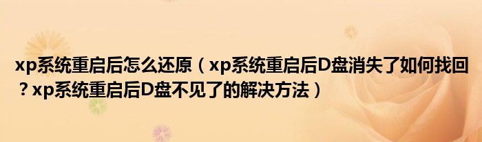 xp系统重启后怎么还原(xp系统重启后D盘消失了如何找回?xp系统重启后D盘不见...