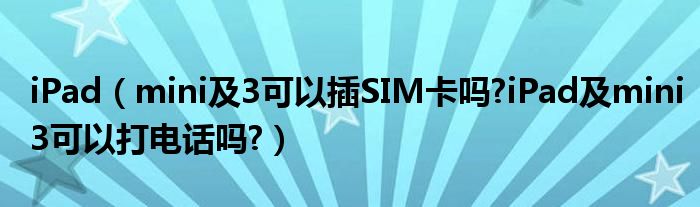 大家好,今天小悦来为大家解答以上问题。iPad,mini及3可以插SIM卡吗?iPad及mini3可以打电话吗?很多人还不知道,现在让我们一起来看看吧!