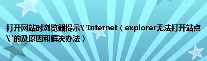 大家好,今天小悦来为大家解答以上问题。打开网站时浏览器提示"Internet,explorer无法打开站点"的及原因和解决办法很多人还不知道,现在让我们一起来看看吧!