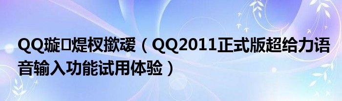 大家好,今天小悦来为大家解答以上问题。QQ璇煶杈撳叆,QQ2011正式版超给力语音输入功能试用体验很多人还不知道,现在让我们一起来看看吧!