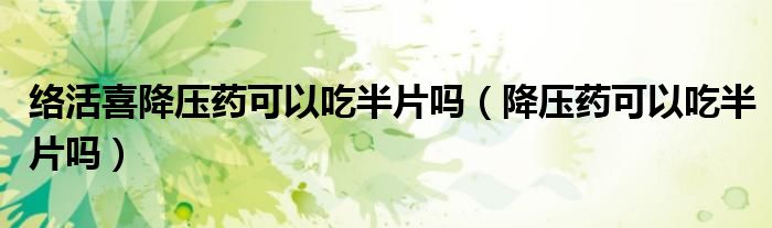 1、降压药能不能吃半片主要看降压药片能不能破,或者根据目前患者的实际情况吃半片能不能很好的控制血压。