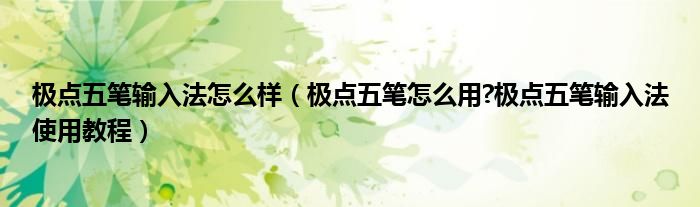 大家好,今天小悦来为大家解答以上问题。极点五笔输入法怎么样,极点五笔怎么用?极点五笔输入法使用教程很多人还不知道,现在让我们一起来看看吧!
