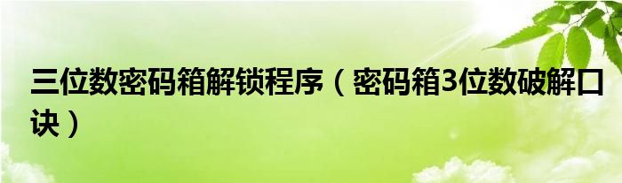 大家好,小晋来为大家解答以下问题,关于三位数密码箱解锁程序,密码箱3位数破解口诀很多人还不知道,今天让我们一起来看看吧!