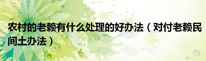 农村的老赖有什么处理的好办法(对付老赖民间土办法)