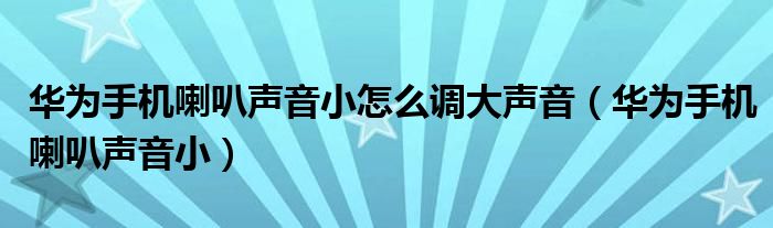 华为手机喇叭声音小怎么调大声音(华为手机喇叭声音小)