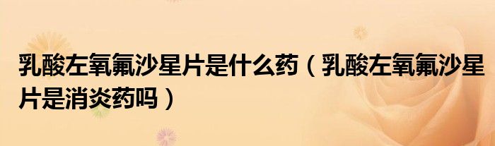 大家好,linda来为大家解答以上的问题。乳酸左氧氟沙星片是什么药,乳酸左氧氟沙星片是消炎药吗很多人还不知道,现在让我们一起来看看吧!