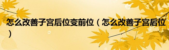 大家好,linda来为大家解答以上的问题。怎么改善子宫后位变前位,怎么改善子宫后位很多人还不知道,现在让我们一起来看看吧!