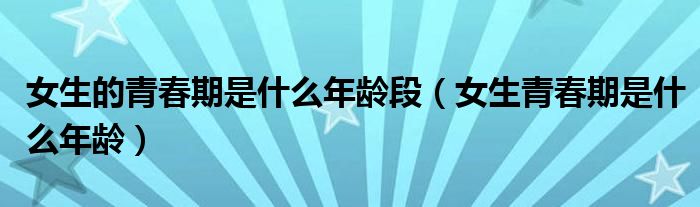 大家好,linda来为大家解答以上的问题。女生的青春期是什么年龄段,女生青春期是什么年龄很多人还不知道,现在让我们一起来看看吧!