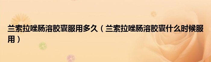 大家好,linda来为大家解答以上的问题。兰索拉唑肠溶胶囊服用多久,兰索拉唑肠溶胶囊什么时候服用很多人还不知道,现在让我们一起来看看吧!