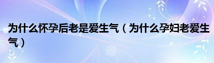 大家好,linda来为大家解答以上的问题。为什么怀孕后老是爱生气,为什么孕妇老爱生气很多人还不知道,现在让我们一起来看看吧!