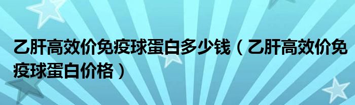 乙肝高效价免疫球蛋白多少钱(乙肝高效价免疫球蛋白价格)