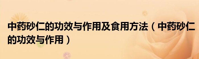 中药砂仁的功效与作用及食用方法(中药砂仁的功效与作用)