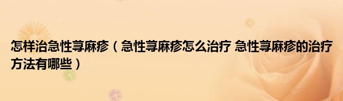 怎样治急性荨麻疹(急性荨麻疹怎么治疗 急性荨麻疹的治疗方法有哪些)