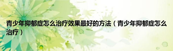 青少年抑郁症怎么治疗效果最好的方法(青少年抑郁症怎么治疗)