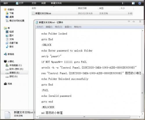 第三步,把TXT文本格式改成bat格式,运行,就会出现一个叫“罪恶的小帐篷”的文件夹。