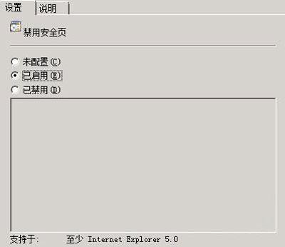 检查该属性设置窗口中的“已启用”选项是否处于选中状态,要是发现它还没有被选中时,我们可以及时将它重新选中,再单击“确定”按钮,如此一来IE浏览器选项设置窗口中的“安全”标签页面就会被自动隐藏起来,那么非法用户自然就无法通过“安全”标签页面随意修改IE浏览器的安全级别了。