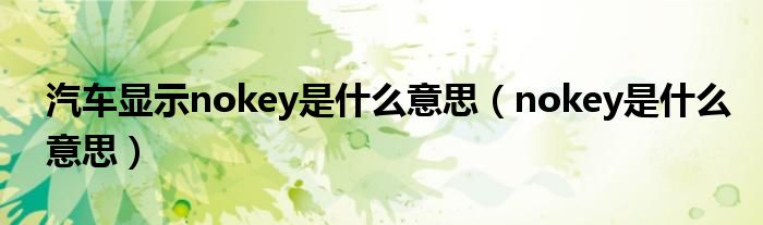 大家好,小晋来为大家解答以下问题,关于汽车显示nokey是什么意思,nokey是什么意思很多人还不知道,今天让我们一起来看看吧!