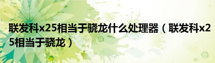 大家好,小晋来为大家解答以下问题,关于联发科x25相当于骁龙什么处理器,联发科x25相当于骁龙很多人还不知道,今天让我们一起来看看吧!
