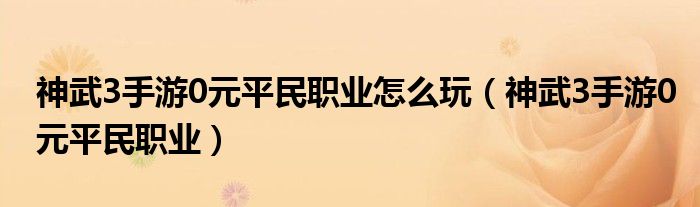 大家好,小晋来为大家解答以下问题,关于神武3手游0元平民职业怎么玩,神武3手游0元平民职业很多人还不知道,今天让我们一起来看看吧!