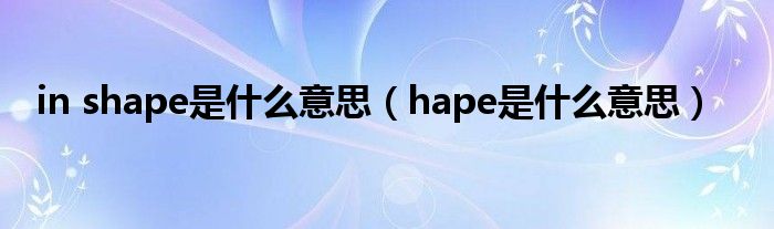 大家好,小晋来为大家解答以下问题,关于in shape是什么意思,hape是什么意思很多人还不知道,今天让我们一起来看看吧!