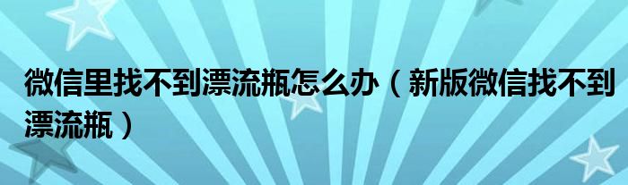 大家好,小晋来为大家解答以下问题,关于微信里找不到漂流瓶怎么办,新版微信找不到漂流瓶很多人还不知道,今天让我们一起来看看吧!