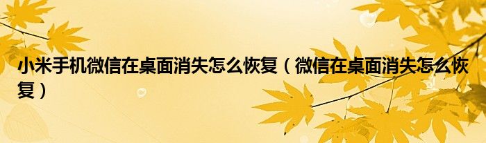 大家好,小晋来为大家解答以下问题,关于小米手机微信在桌面消失怎么恢复,微信在桌面消失怎么恢复很多人还不知道,今天让我们一起来看看吧!