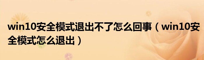 大家好,小晋来为大家解答以下问题,关于win10安全模式退出不了怎么回事,win10安全模式怎么退出很多人还不知道,今天让我们一起来看看吧!