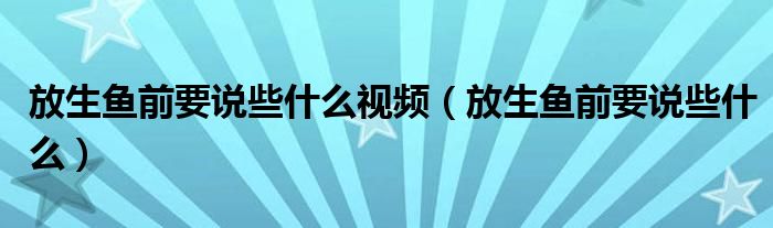 大家好,小晋来为大家解答以下问题,关于放生鱼前要说些什么视频,放生鱼前要说些什么很多人还不知道,今天让我们一起来看看吧!