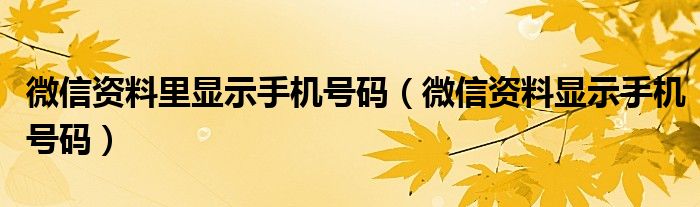 大家好,小晋来为大家解答以下问题,关于微信资料里显示手机号码,微信资料显示手机号码很多人还不知道,今天让我们一起来看看吧!