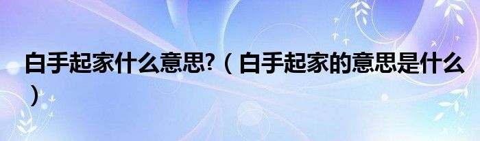 大家好,小晋来为大家解答以下问题,关于白手起家什么意思?,白手起家的意思是什么很多人还不知道,今天让我们一起来看看吧!