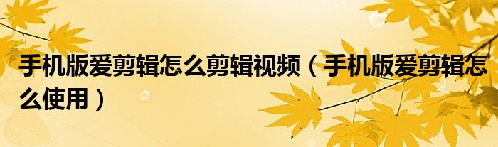 手机版爱剪辑怎么剪辑视频(手机版爱剪辑怎么使用)