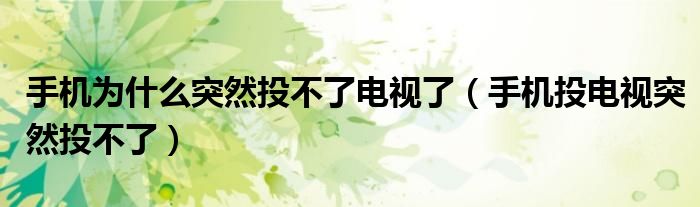 大家好,小晋来为大家解答以下问题,关于手机为什么突然投不了电视了,手机投电视突然投不了很多人还不知道,今天让我们一起来看看吧!