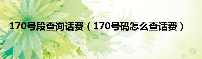 大家好,小晋来为大家解答以下问题,关于170号段查询话费,170号码怎么查话费很多人还不知道,今天让我们一起来看看吧!
